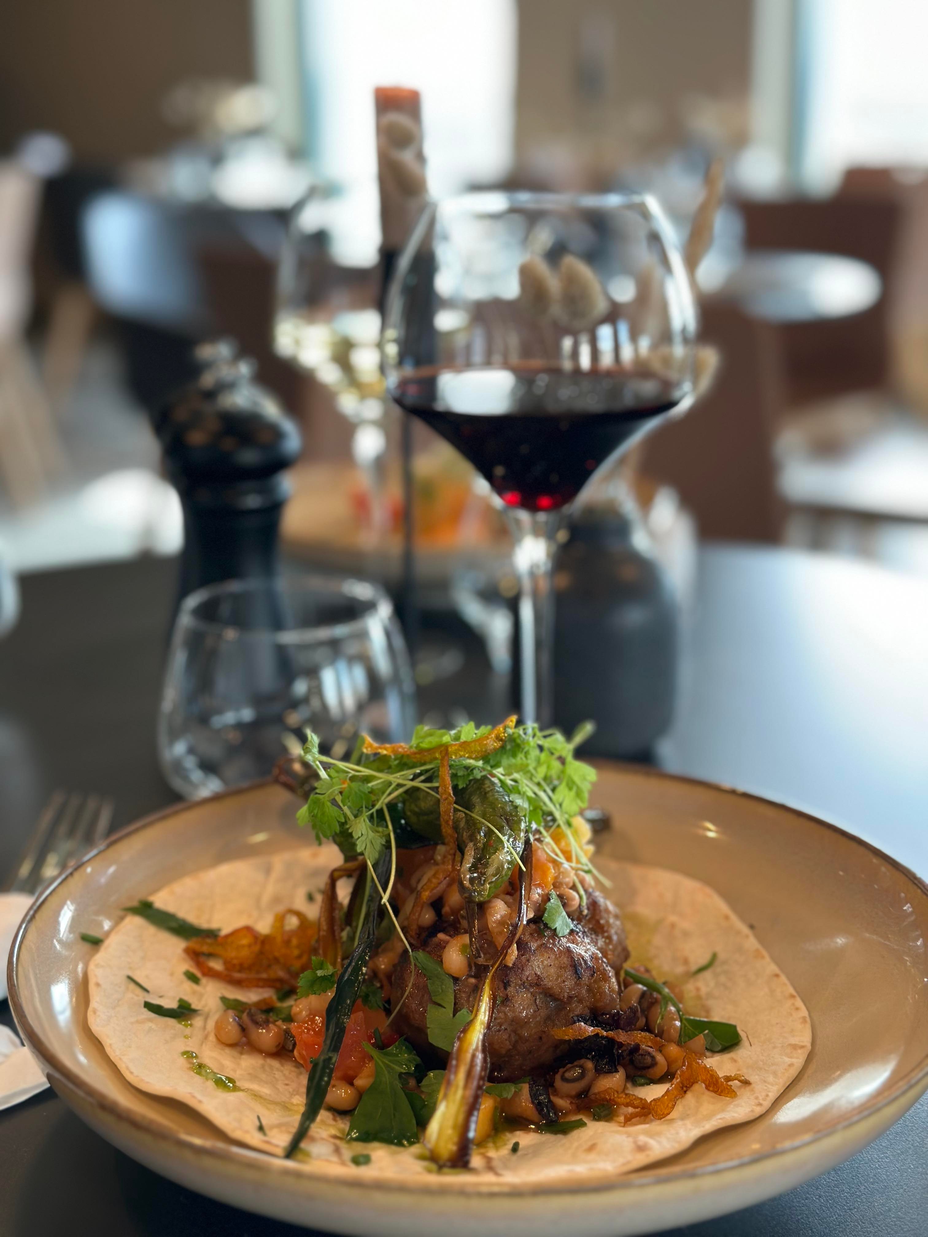 Frasig schnitzel, brynt potatis, bearnaise, rödvinssås